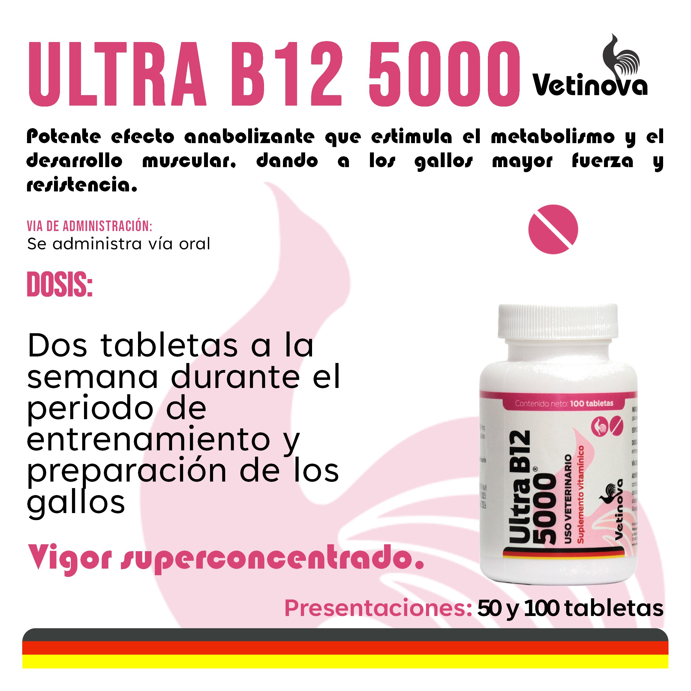• Incrementa el vigor y la resistencia de las aves de combate.
